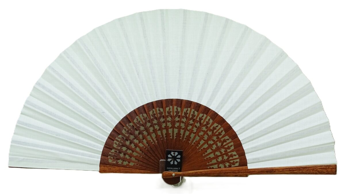 Abanico elaborado en madera de BUBINGA. Calado artesanal, pulido. Pieza única. 27 cm