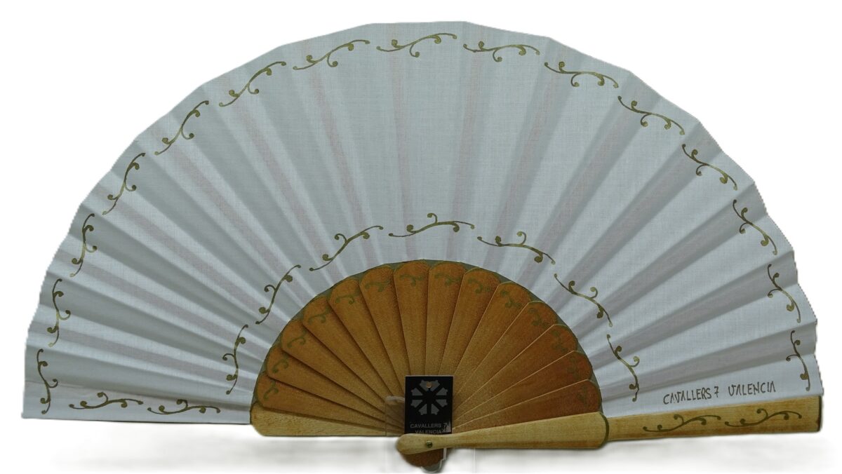 Abanico standard, elaborado en madera de abedul. Calado artesanal, pulido. El país, pintado a mano. Pieza única.