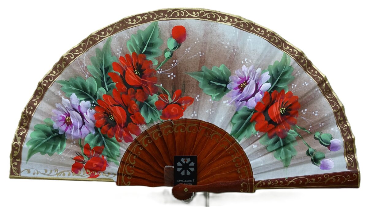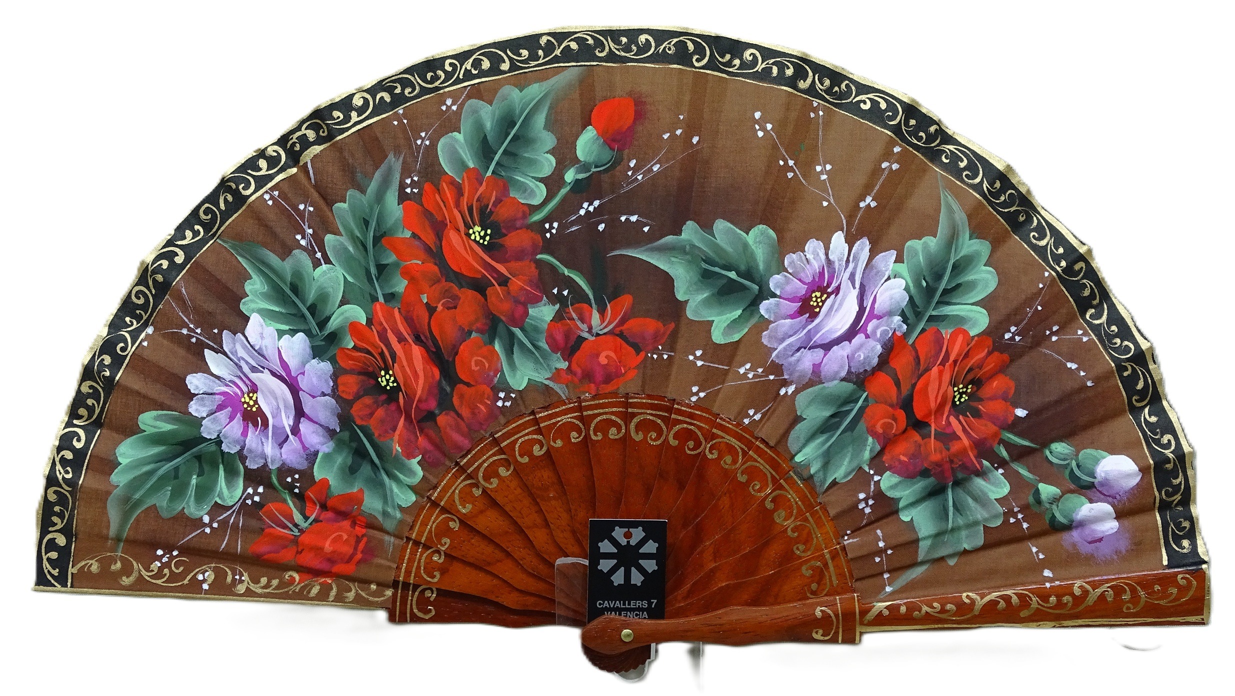 Abanico con flores. Lacado natural semibrillo. Pintado a mano. Dimensiones: Peso: